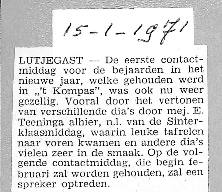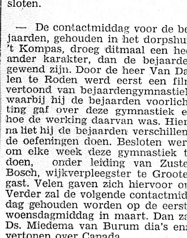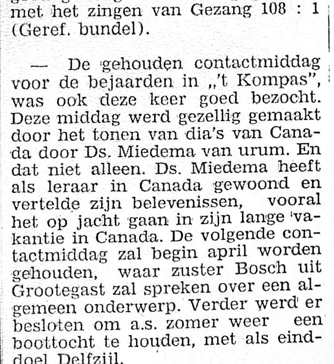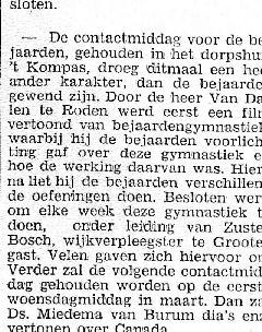 Films boottocht, dia's, plannen oprichting zangkoortje, aandacht voor bejaardengymnastiek