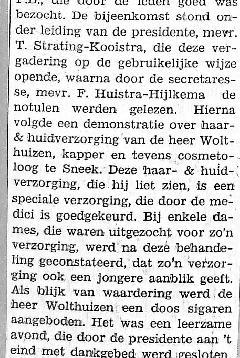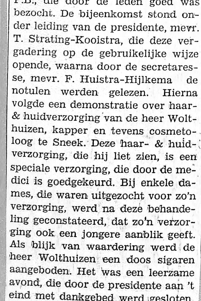 dhr Wolthuizen, Sneek geeft demonstratie haar- en huidverzorging