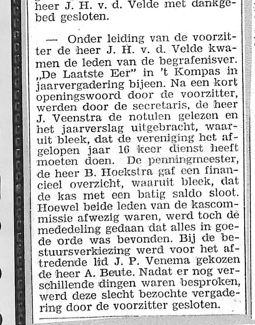Jaarverg. Begrafenisver. "De Laatste Eer"