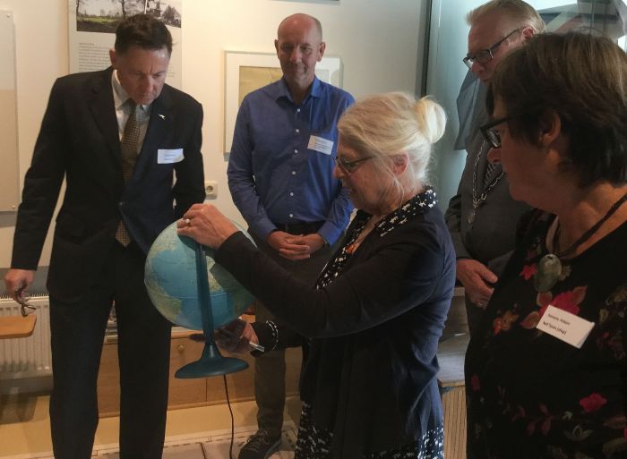 Het was een reuze eer om de heer Mason in het museum rond te leiden. Wat is leuke informatie over Abel Tasman voor de Australische ambassadeur? Natuurlijk niet wat ze in Australië al weten. De wetenswaardigheden in Nederland zijn in dit geval het meest interessant. Bijvoorbeeld het testament, waarin staat dat voor de armen van Lutjegast (Luytkegarst) de somma van vijfentwintig guldens ?EURoeieder?EUR? werd nagelaten. Ook de huwelijksacte van de trouwerij met Jannetje Tjaers. Uit die twee documenten in het museum blijkt dat Abel uit Lutjegast komt. Ook de oude landschapskaart van het Westerkwartier en het plaatje van de oude kerk werden bekeken.