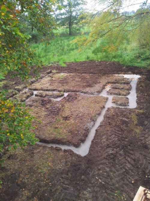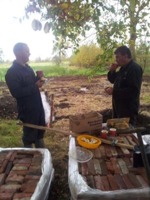 Door omstandigheden zijn we nu pas bezig een tweede blik op het verleden te bouwen, namelijk naast een petgat de contouren van het huis van Weit en Anne van der Naald.