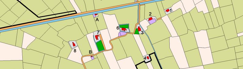 Hieronder een fragment. Een ondergrond kaart van 1832 met daarop de huizen die er toen stonden, gekoppeld aan de huizen van nu. Zo is dit gemaakt voor in het 2e Huizenboek van elke straat. Een proeve:
